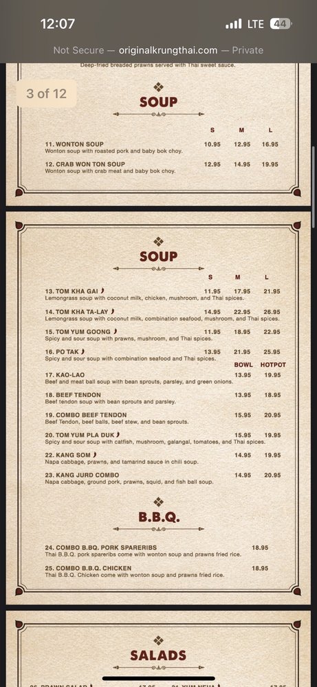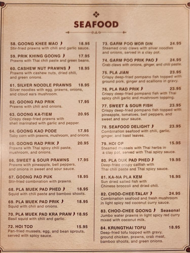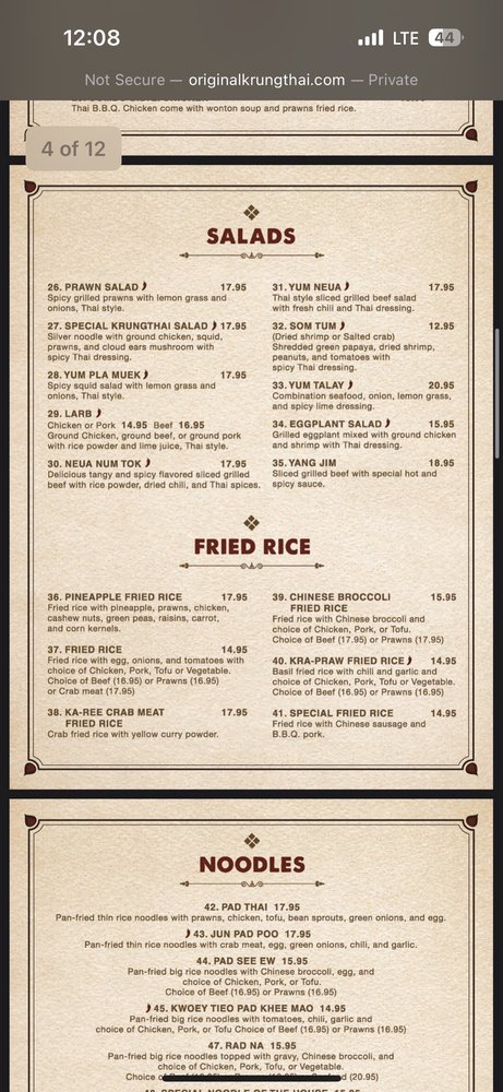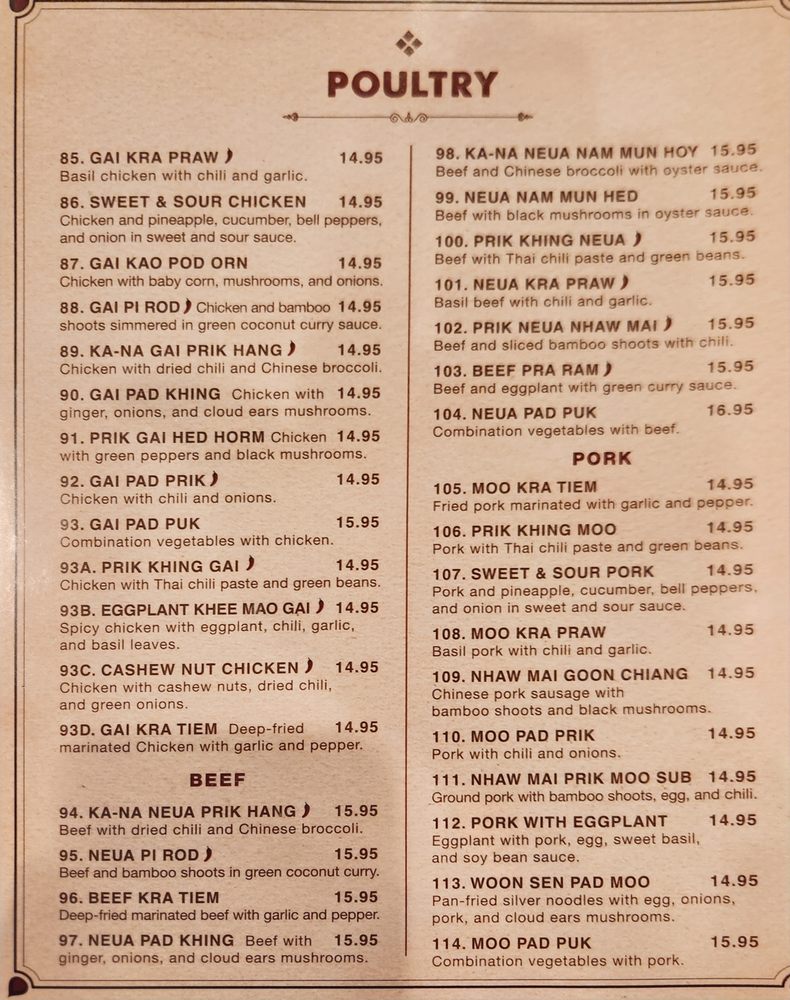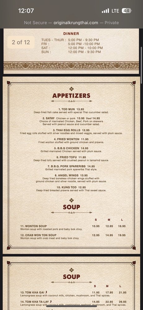 "The Original Krung Thai Restaurant" is a renowned Thai restaurant located in San Jose, CA. Known for its iconic status in the area, this restaurant offers a wide range of authentic Thai dishes with a focus on quality and flavor. Customers rave about the delicious Chicken Satay with flavorful peanut sauce and crunchy cucumbers, as well as the creamy Tom Kha Gai soup. Other popular dishes include the Crab Fried Rice, Green Curry with Beef, and Mango Sticky Rice for dessert. The attentive service and efficient staff ensure a pleasant dining experience. Despite some minor drawbacks in portion sizes and ambiance, the overall quality of the food and service make "The Original Krung Thai Restaurant" a must-visit for Thai cuisine enthusiasts.